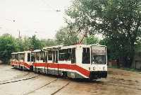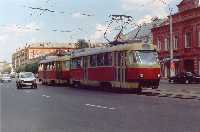 Поезд из вагонов "Татра" Т-3 номер 3 и 4 (депо N 1) на улице Епифанской.