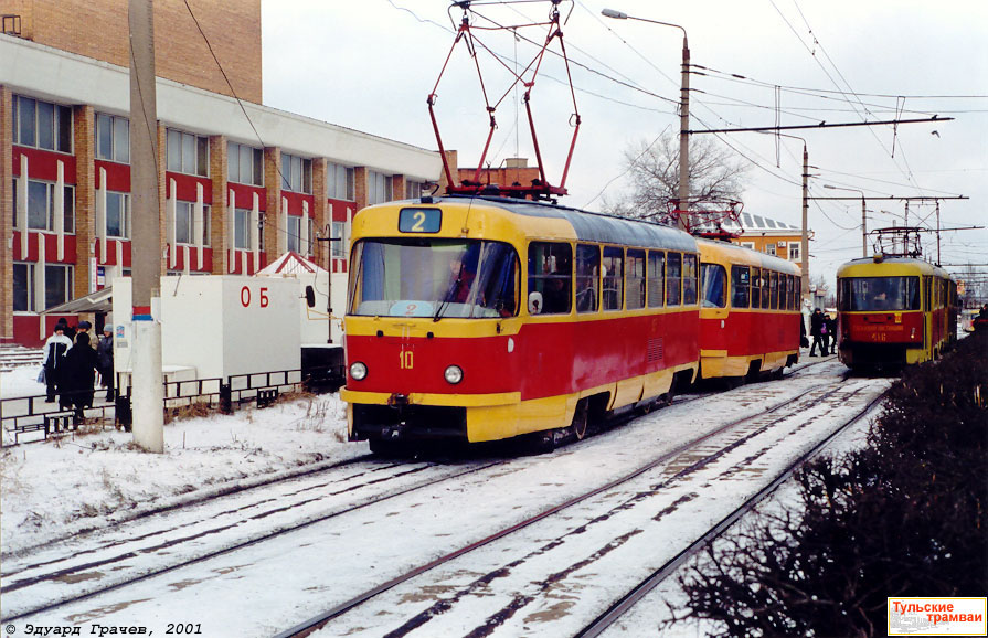 Поезд из вагонов "Татра" Т-3 номер 10 и 9 (депо N 1) на улице Советской.
