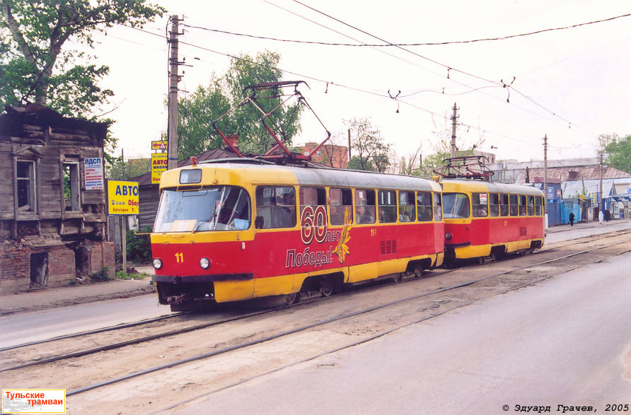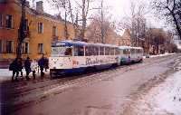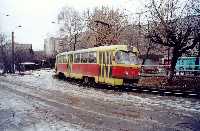 Поезд из вагонов "Татра" Т-3 номер 11 и 12 (депо N 1) на улице Оборонной.