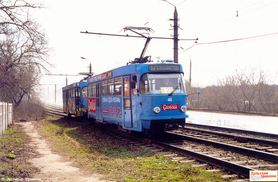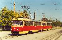 Поезд из вагонов "Татра" Т-3D номер 45 и 46 (депо N 1) на проспекте Ленина.