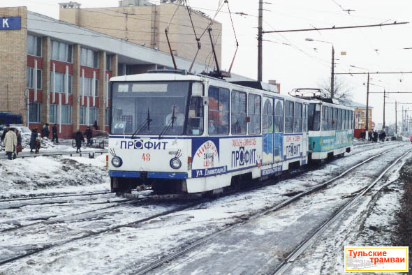 Поезд из вагонов "Татра" Т6В5 номер 48 и 47 был составлен 18 января 2002 года. Снимок сделан на ул. Советской.