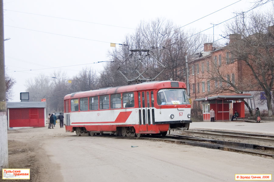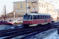 Вагон "Татра" Т-3 номер 57 выезжает с разворотного кольца "Улица Глинки"