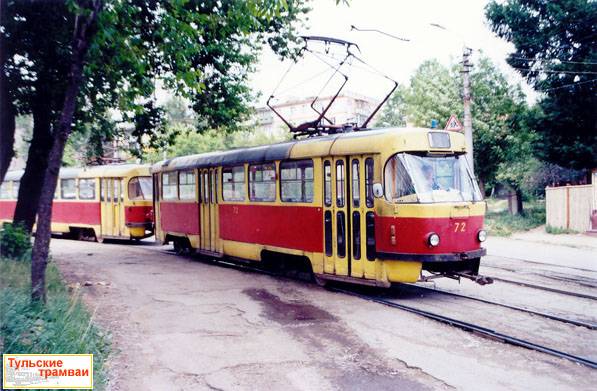 Поезд из вагонов "Татра" Т-3 номер 72 и 71 (депо N 1) на улице Кауля.