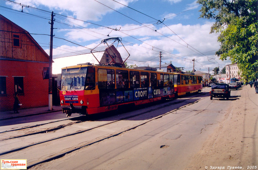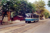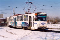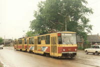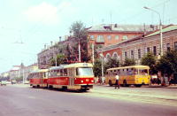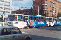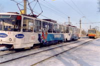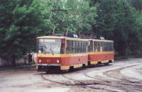 Поезд из вагонов "Татра" Т6Б5 номер 83 и 84 (депо N 1) на улице Оборонной.