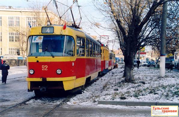 Вагон "Татра" T-3 номер 92 (депо N 1) на ул. Лейтейзена во время парада, посвященного 75-летию трамвая в Туле.