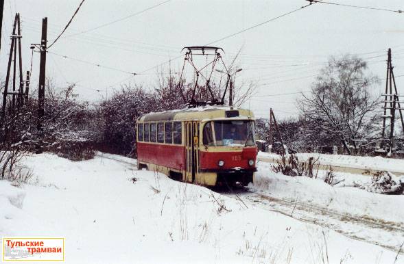 Вагон "Татра" Т-3 номер 105 (депо N 1) на ул. Шоссейной (Ивановские дачи) на маршруте N 4.