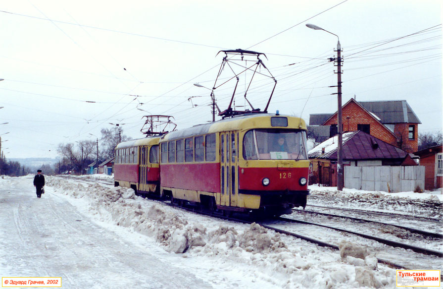 Поезд из вагонов "Татра" Т-3 номер 126 и 127 (депо N 1) на улице Воздухофлотской.