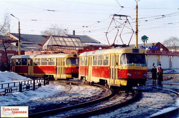 Поезд из вагонов "Татра" Т-3 номер 138 и 139 (депо N 1) на ул. Советской.