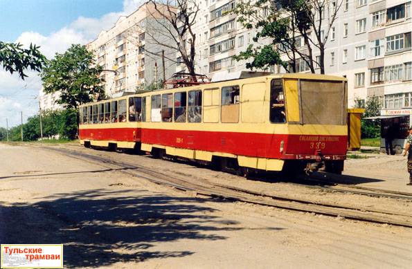 Поезд из вагонов "Татра" Т6B5 номер 338 и 339 (депо N 2) на ост. "Ул. Епифанская".