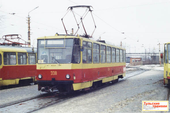 Вагон "Татра" Т6B5 номер 338 (депо N 2) на линейной станции Московский вокзал.
