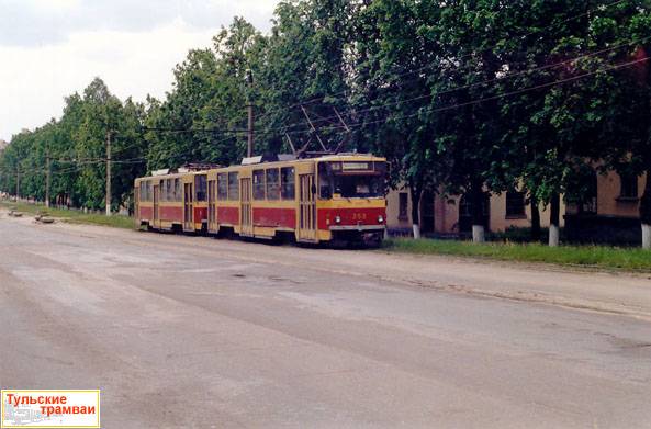 Поезд из вагонов "Татра" Т6B5 номер 350 и 351 (депо N 2) на ул. Металлургов.