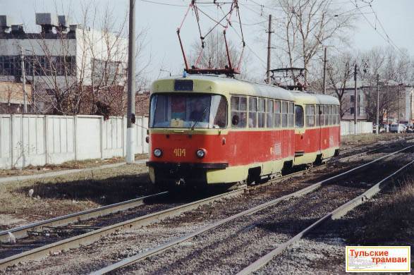 Поезд из вагонов "Татра" Т-3 номер 404 и 403 (депо N 2) на ул. Коминтерна.
