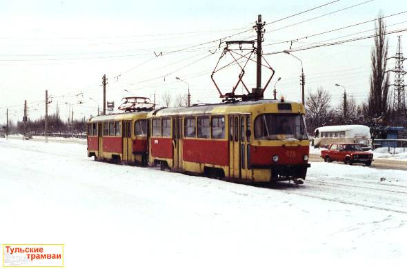 Поезд из вагонов "Татра" Т-3 номер 429 и 430 (депо N 2) на проспекте Ленина.