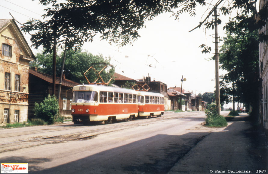 Поезд из вагонов "Татра" Т-3 номер 443 и 444 (депо N 2) на Улице Епифанской.