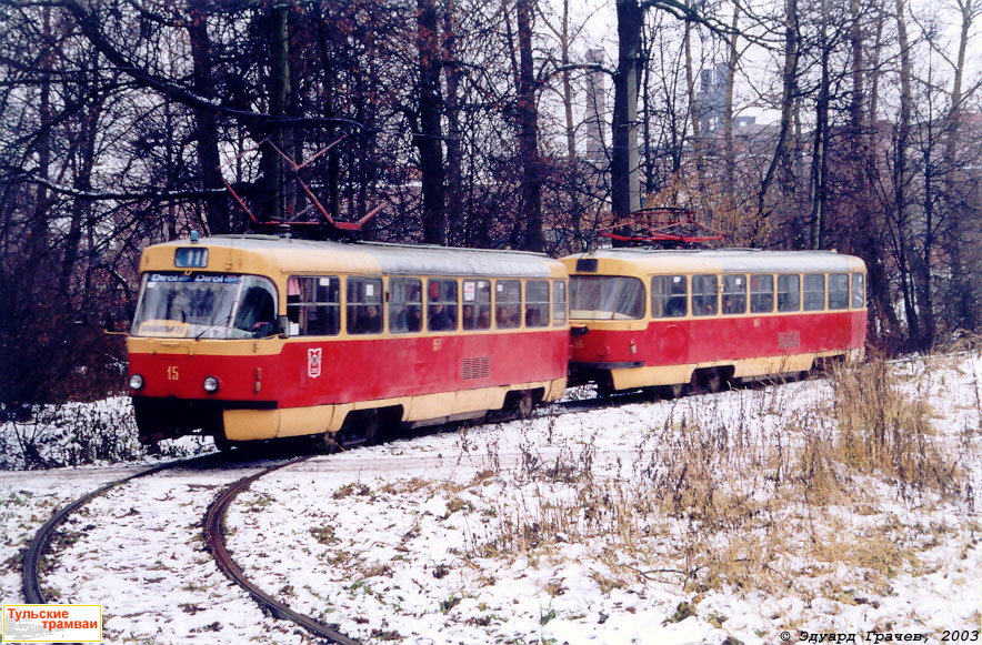 Поезд из вагонов "Татра" Т-3 номер 15 и 16 (депо N 1) на разворотном кольце "Комбайновый завод".