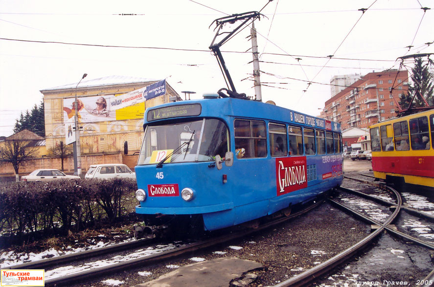 Вагон "Татра" Т-3D номер 45 (депо N 1) на улице Советской.