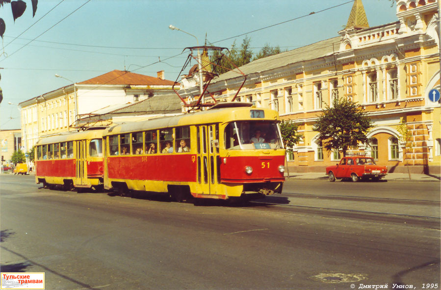 Поезд из вагонов "Татра" Т-3 номер 51 и 52 (депо № 1) на улице Советской.