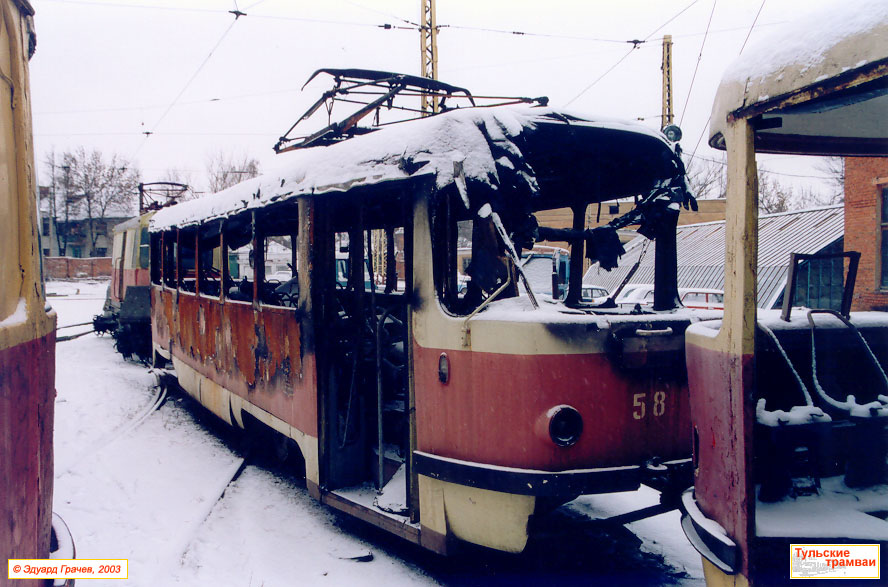 Вагон "Татра" Т-3 номер 58 на территории депо № 1 после пожара