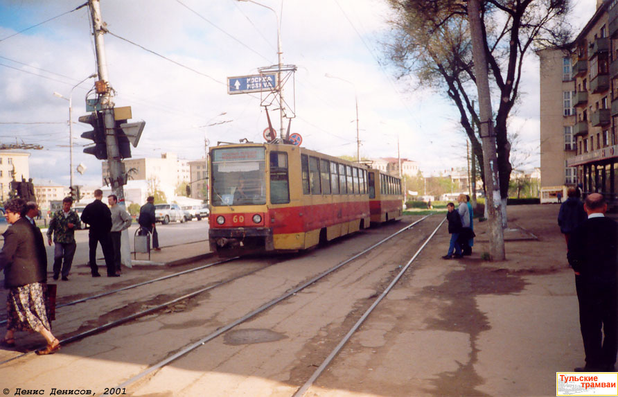 Поезд из вагонов КТМ-8 номер 69 и 70 (депо N 1) на остановке "Улица 9-го Мая".
