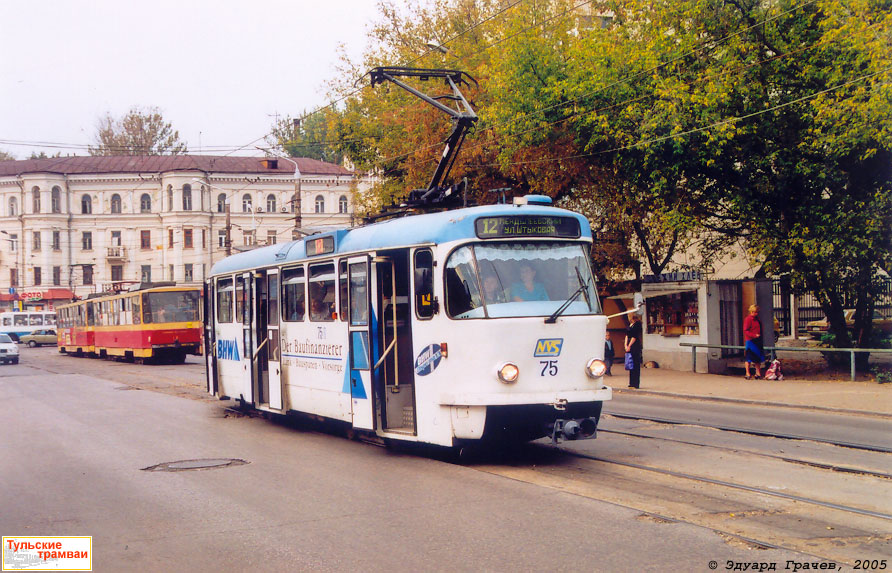 Вагон "Татра" Т-3D номер 75 (депо N 1) на остановке "Улица Оборонная"