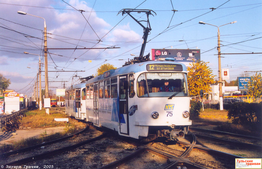 Поезд из вагонов "Татра" Т-3D номер 75 и 76 (депо N 1) на улице Советской