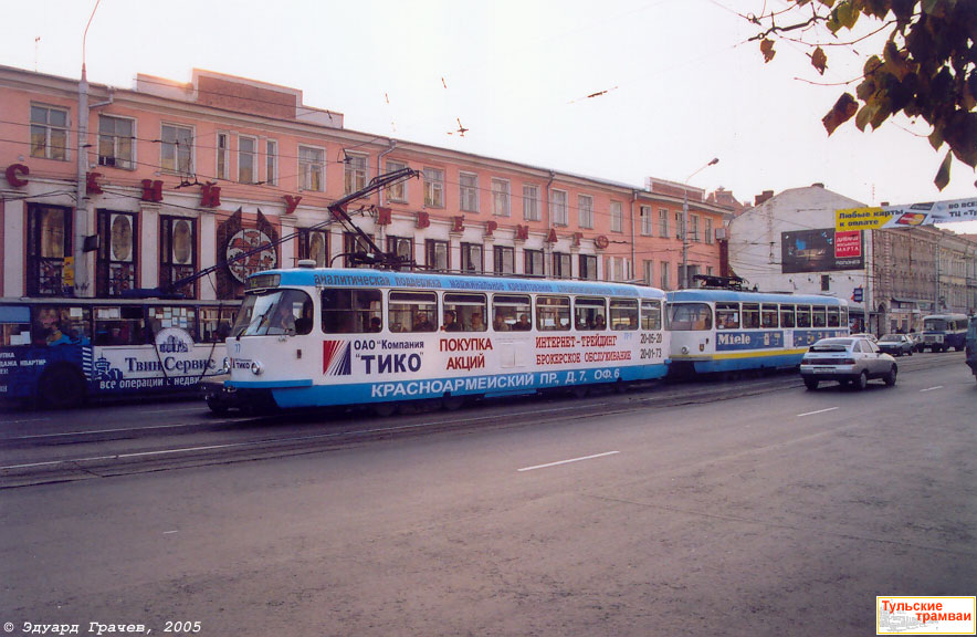 Поезд из вагонов "Татра" Т-3D номер 77 и 78 (депо N 1) на улице Советской