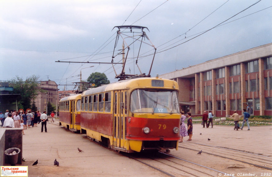 Поезд из вагонов "Татра" Т-3 номер 79 и 80 (депо N 1) на улице Советской.