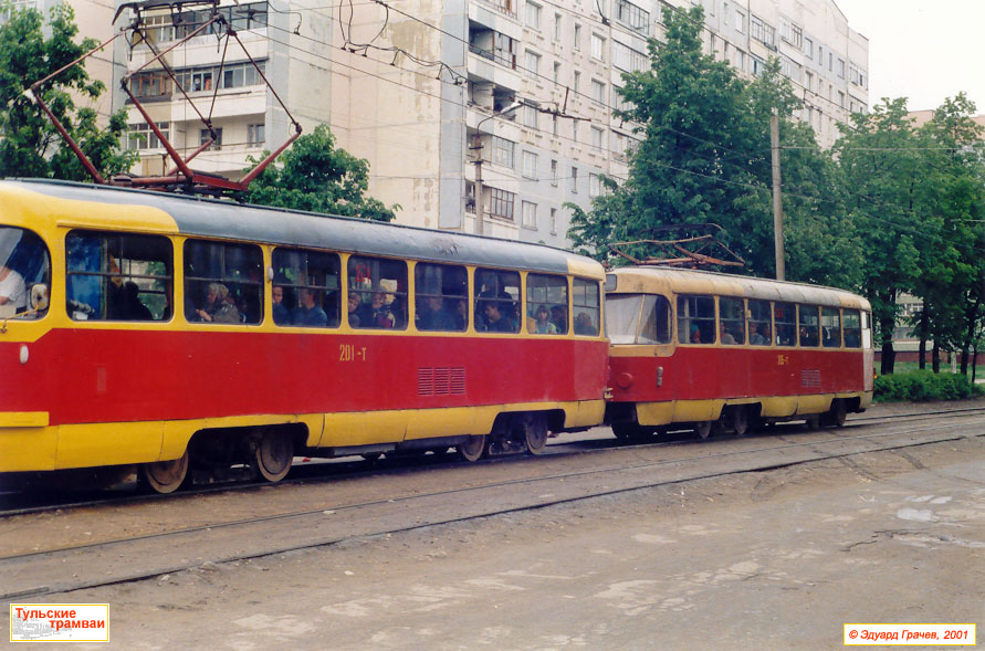 Поезд из вагонов "Татра" Т-3 номер 201 и 265 (депо № 2) на улице Епифанской