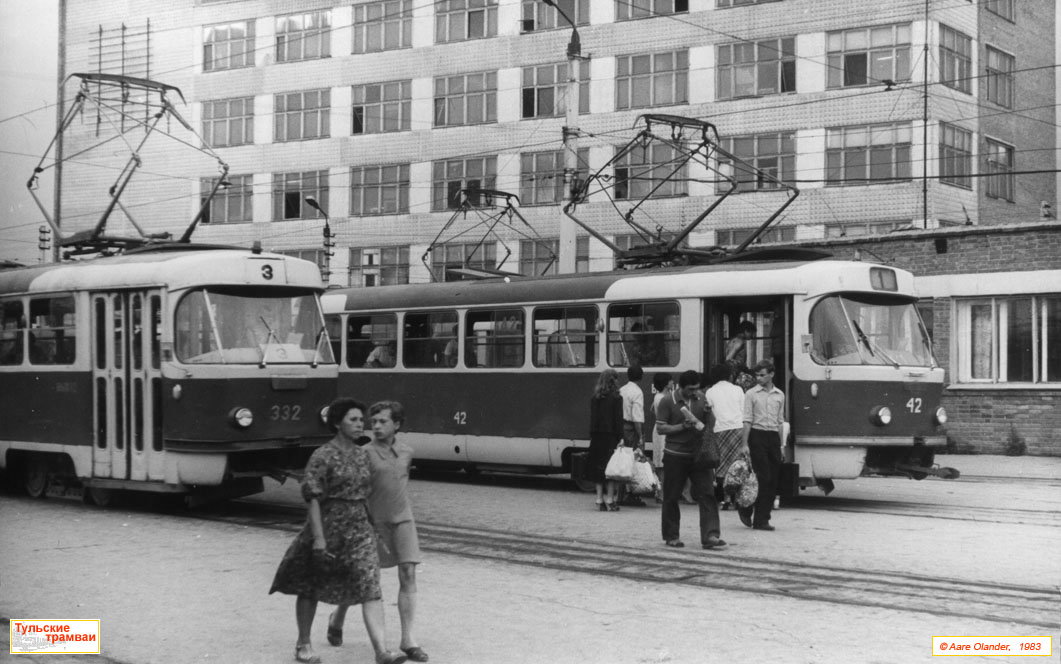 Вагоны "Татра" Т-3 номер 332 и 42 на линейной станции "Московский вокзал"