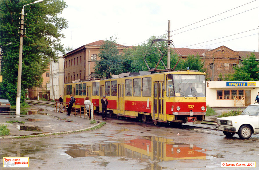 Поезд из вагонов "Татра" Т6Б5 номер 332 и 333 на остановке "Улица Лейтейзена"